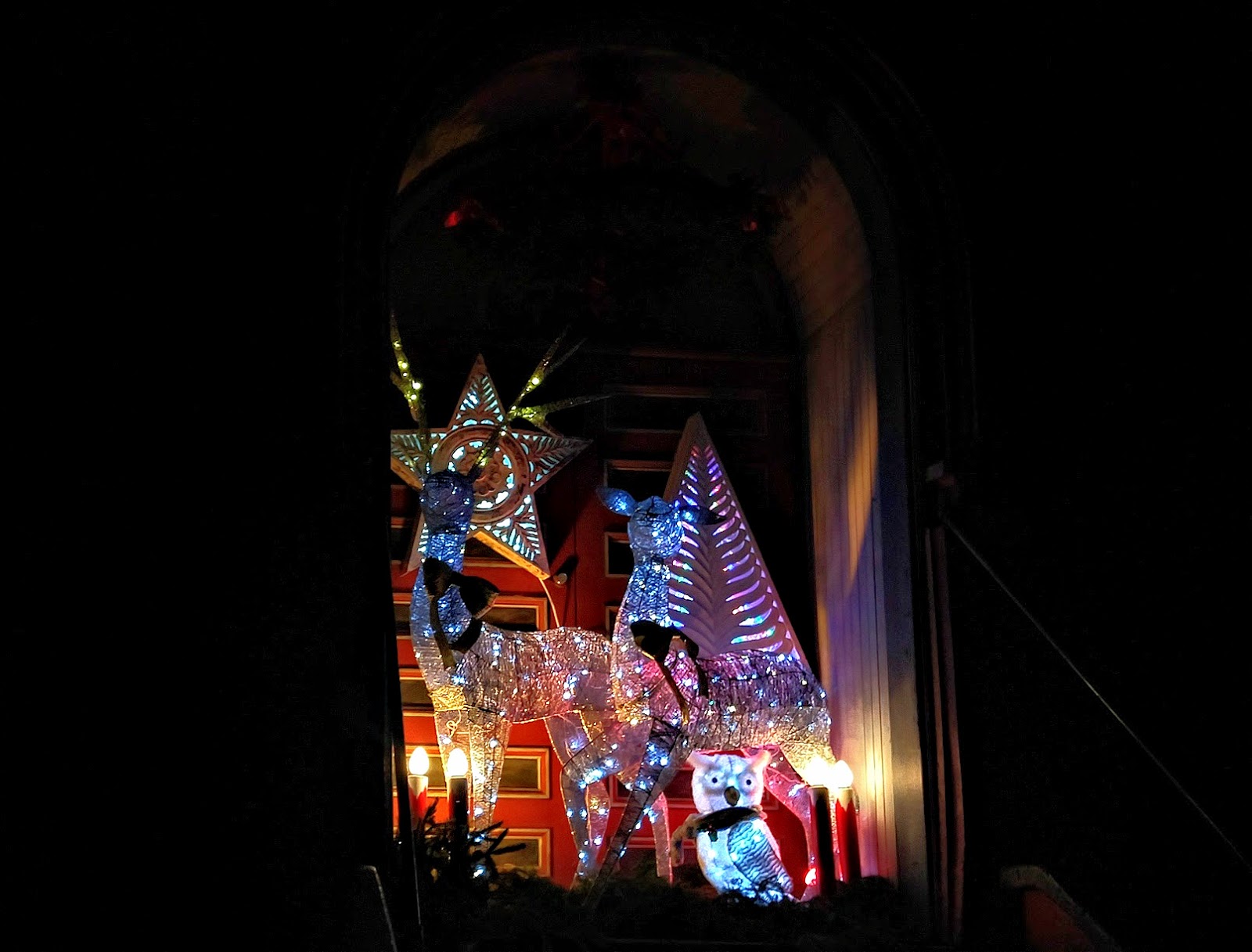 We began evening tours of local holiday light displays right along with some breezy snow on Tuesday evening. Given the not so high tech cell phone camera, any homes that are missed are likely due to blurred images. We'll try to swing back around. Likewise, if you know of any fantastic stops, just let us know! The best way to view them is simply to take your own drive. Hot cocoa optional.
