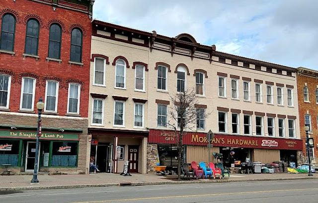 The barber pole for Fred's Barber Shop is up on the Old Bank Building. A new bit of history in the making.